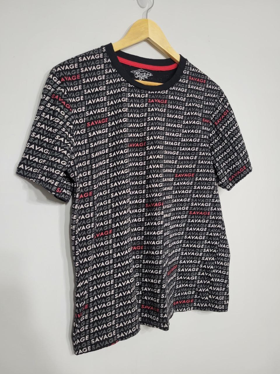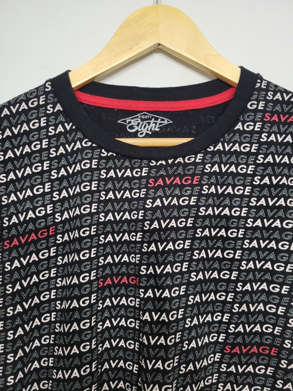Eighty Eight Size Large Men's Savage All Over Print T-Shirt Pre-owned good condition Black, white, red 100 percent cotton 26 inches long 21 inches across C3