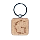 Elegant Botanical Floral Letter G Engraved Wood Square Keychain Tag Charm
