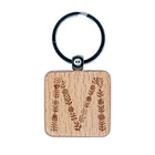 Elegant Botanical Floral Letter M Engraved Wood Square Keychain Tag Charm