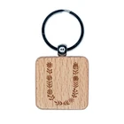 Elegant Botanical Floral Letter U Engraved Wood Square Keychain Tag Charm