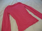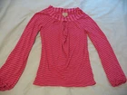 Welcome to my Auction! Up for bidding is the beautiful 'Willa' top from Ella Moss. Made of super soft Pima cotton in a gorgeous Raspberry Pink shade - this style features tonal striping, a feminine keyhole design in front, graceful long sleeves with slight bell effect at the elasticized cuffs. Perfect paired with pants or skirts, dressed up or down. This top was a big celebrity favorite and has long been sold out. Excellent pre-owned condition - I think I only wore this once, because it looks wonderful. Size is marked X-Small and can easily fit a Small as well - please refer to the measurements: 20 inches long from back of neck to hem, 28 inches in bust (unstretched), 20 inch long sleeve Please ask all questions before bidding - serious bidders only. Be sure to check my other listings for more great items and combined shipping deals. Thank you for visiting and good luck!