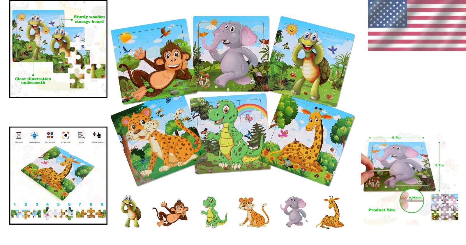 Engaging 9-Piece Wooden Jigsaw Puzzles for Toddlers - Safe Fun Learning Set ‹ › ‹ › ‹ › ‹ › ‹ › ‹ › ‹ › ‹ › ‹ › ‹ › Engaging 9-Piece Wooden Jigsaw Puzzles for Toddlers Safe Fun Learning Set HAVING FUN: Discover the joy of learning with our captivating 9-piece puzzles! Each wooden jigsaw puzzle is not just a toy; it's a delightful experience for toddlers, combining entertainment with essential skill development. COGNITIVE DEVELOPMENT: These vibrant animal puzzles are designed to enhance your child's cognitive skills by improving hand-eye coordination, problem-solving abilities, and spatial reasoning. As a charming alternative to screen time, they encourage engaged play, nurturing young minds. FUN AND COLORFUL: Set includes 6 delightful jigsaw puzzles featuring an animated tiger, giraffe, dinosaur, tortoise, elephant, and monkey. Perfect for children aged 2 to 5 , these engaging puzzles make learning a colorful adventure. TOP QUALITY: Crafted from durable and safe wood, our jigsaw puzzles promise long-lasting fun. Each puzzle features beautifully printed animals with rounded edges and large pieces to prevent any unwanted accidents, creating a worry-free playtime. LOVELY PRESENT: Searching for the perfect gift? This animated puzzle set makes a charming surprise for your little ones or children in your family and friends' circles. Ideal for birthdays and Christmas, these puzzles will be treasured by kids age 2 and up. Welcome to At , we are dedicated to crafting high-quality, safe, and engaging toys that spark creativity and learning in infants and toddlers. Choose our 9-piece wooden jigsaw puzzles to provide a fun and educational experience for your child. Shipping Free & Fast Shipping - We offer free shipping to most of the USA with a normal delivery time of 3-7 days. However, due to the current situation, additional delivery time (up to 3 weeks) may be required for some items. Alternative Carriers - We may use alternative carriers (e.g. USPS, FedEx, UPS, etc.) to ensure your package arrives safely and on time. Due to the use of multiple carriers, we are unable to provide a tracking number automatically. Handling Time - Orders are processed and shipped within 1-2 business days of receiving cleared payment. Shipping Restrictions - Shipping to Alaska, Hawaii, Puerto Rico, Guam, and other US territories may incur shipping charges or delivery restrictions. Please contact us before ordering, or your order can be refunded/cancelled. State Restrictions - There may be restrictions based on your state of purchase. For example, certain items may not be shipped to California due to state regulations. Contact for Tracking Updates - If you require tracking updates or have any concerns about the delivery of your order, please feel free to contact us, and we will be happy to assist you. Return 30-Day Hassle-Free Returns - We want you to be completely satisfied with your purchase. If you are not, you can return the item within 30 days of receiving it for a full refund or exchange. Easy Return Process - To start a return, simply contact us and we will provide you with a prepaid return shipping label and detailed instructions. Restocking Fee - There are no restocking fees for returns. However, the buyer is responsible for return shipping costs if the return is not due to a seller's error. Refund Processing Time - Refunds will be processed within 5 business days of receiving the returned item in its condition. Payment We accept all major credit cards, PayPal, and Apple Pay for your convenience. Your payment information is secure and encrypted to ensure a safe and seamless transaction. Please complete your payment within 3 days of purchase to avoid any delays in shipping. Feedback Your feedback is extremely important to us. We strive to provide the best products and customer service possible. If you are satisfied with your purchase, please take a moment to leave us a positive review. If you have any concerns or issues with your order, please contact us before leaving negative feedback. We are committed to resolving any problems and ensuring your satisfaction. Contact Us If you have any questions or concerns, please feel free to out to our customer support team. You can contact us through the eBay messaging system. We are available Monday to Friday, 9:00 am to 5:00 pm EST, and we will do our best to respond to your inquiry within 24 hours. Buy it now and enjoy a pleasant shopping experience! MPN: Wooden_Puzzles_for_Toddlers Recommended Age Range: 2-5 Old Model: Wooden Puzzles for Toddlers Skills: Hand-Eye Coordination,Motor Skills,Problem-Solving,Cognitive Development,Spatial Reasoning Type: Puzzle Age Level: 2 and Up Theme: Puzzles Color: Multicolor Gender: Unisex