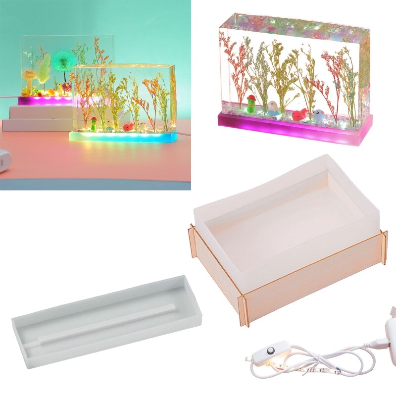 Features: brand new and high quality LED LIGHT SHADE MOLD KIT. Each set comes with rectangular silicone mold, lamp holder base, and USB cable wire. for ideal epoxy resin casting mold kit for making LED light ornament, handmade light shade, lamp holder base, UNIQUE DESIGN. Your immaculate combination with the LED luminous base makes the best present for your family, lover and Perfect for birthday parties, Valentine’s Day, commencement ceremonies and Mother’s Day. DIY HOLIDAY DECORATION. Resin Silicone Molds for Household Decoration at Festivals Gifts, Perfect for office decor, workbench, bedside lamp, nursery lamp, children's room, holiday decor, party, wedding, birthday gifts. EASY TO USE. Just pour the liquid epoxy resin and set the various embellishments into the mold and wait for cold process. Super soft and flexible, non-stick, the finished are easy to for out of the molds. for IDEAL GIFT. for Ideal gift for girls, student, designers, artists, craft hobbyists on Thanksgiving, Christmas, Birthday, Specifications: Material: Silicone Color: As Picture Shown Rectangular Mold Size: Approx. 16x11.1x8cm/6.3x4.37x3.15in Base Size: Approx. 15.3x4.8cm/6.02x1.89in Cable Length: Approx. 12x10cm/4.72x3.94in Weight: Approx. 120g Package Includes: 1 Set Epoxy Resin Casting Mold note: 1.Please allow 0-1cm error due to manual measurement. pls make sure you do not mind before you bid. 2.Due to the difference between different monitors, the picture may not reflect the actual color of the item. Thank you!