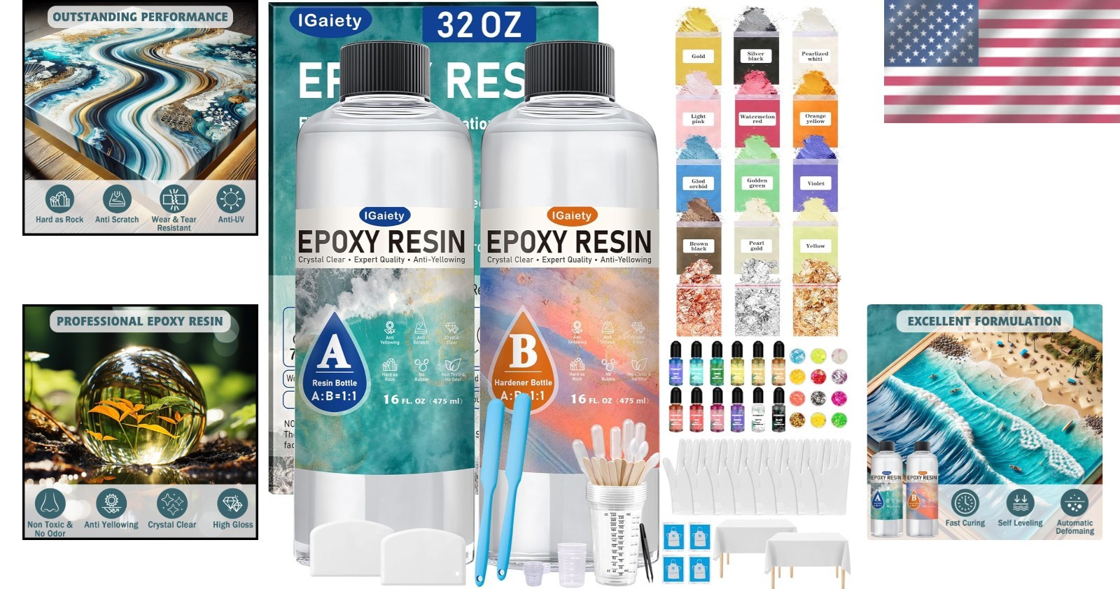 Epoxy Resin Kit 32 OZ Crystal Clear Self-Leveling Bubble-Free for Crafts DIY ‹ › ‹ › ‹ › ‹ › ‹ › ‹ › ‹ › ‹ › Epoxy Resin Kit - 32 OZ Crystal Clear Your ultimate solution for DIY crafts and artistic creations! This exceptional epoxy resin kit is designed to empower your creativity and help you achieve stunning results. Features: Easy to Use: Simply mix 2 parts resin in a 1:1 volume ratio to start crafting. The clear resin’s formula ensures straightforward mixing and pouring without guesswork. Long Working Time: With a generous 45-minute working time, you have the luxury to mix bright colors and bring your artistic vision to life. Self-Leveling Properties: Forget about checking for flatness. This resin kit creates a smooth and flawless surface effortlessly. No Bubbles: Enhanced with defoamer, our resin automatically releases trapped bubbles, ensuring a smooth finish for professional-looking results. Anti-Yellowing Formula: Keep your artwork vibrant over the with our crystal-clear resin that is designed to resist yellowing. Beginner-Friendly: Includes a detailed instruction manual to guide you through common challenges in resin production. Versatile Applications: Perfect for creating jewelry, coasters, artwork, and even for sealing and coating various surfaces. Easy to Mix: Our clear resin mixes beautifully with pigment and mica powder for endless creative possibilities. Why Choose Our Epoxy Resin Kit? Whether you are an experienced artist or embarking on your first DIY project, our Epoxy Resin Kit equips you with the perfect medium to unleash your creativity. Its user-friendly attributes ensure a seamless crafting experience that results in breathtaking outcomes every time. Don't limit your imagination—create stunning resin artworks and projects that reflect your personal style and passion. Order your Epoxy Resin Kit today and transform your ideas into reality! Shipping Free & Fast Shipping - We offer free shipping to most of the USA with a normal delivery time of 3-7 days. However, due to the current situation, additional delivery time (up to 3 weeks) may be required for some items. Alternative Carriers - We may use alternative carriers (e.g. USPS, FedEx, UPS, etc.) to ensure your package arrives safely and on time. Due to the use of multiple carriers, we are unable to provide a tracking number automatically. Handling Time - Orders are processed and shipped within 1-2 business days of receiving cleared payment. Shipping Restrictions - Shipping to Alaska, Hawaii, Puerto Rico, Guam, and other US territories may incur shipping charges or delivery restrictions. Please contact us before ordering, or your order can be refunded/cancelled. State Restrictions - There may be restrictions based on your state of purchase. For example, certain items may not be shipped to California due to state regulations. Contact for Tracking Updates - If you require tracking updates or have any concerns about the delivery of your order, please feel free to contact us, and we will be happy to assist you. Return 30-Day Hassle-Free Returns - We want you to be completely satisfied with your purchase. If you are not, you can return the item within 30 days of receiving it for a full refund or exchange. Easy Return Process - To start a return, simply contact us and we will provide you with a prepaid return shipping label and detailed instructions. Restocking Fee - There are no restocking fees for returns. However, the buyer is responsible for return shipping costs if the return is not due to a seller's error. Refund Processing Time - Refunds will be processed within 5 business days of receiving the returned item in its condition. Payment We accept all major credit cards, PayPal, and Apple Pay for your convenience. Your payment information is secure and encrypted to ensure a safe and seamless transaction. Please complete your payment within 3 days of purchase to avoid any delays in shipping. Feedback Your feedback is extremely important to us. We strive to provide the best products and customer service possible. If you are satisfied with your purchase, please take a moment to leave us a positive review. If you have any concerns or issues with your order, please contact us before leaving negative feedback. We are committed to resolving any problems and ensuring your satisfaction. Contact Us If you have any questions or concerns, please feel free to out to our customer support team. You can contact us through the eBay messaging system. We are available Monday to Friday, 9:00 am to 5:00 pm EST, and we will do our best to respond to your inquiry within 24 hours. Buy it now and enjoy a pleasant shopping experience! Unit Quantity: 32.0 Color: Clear Unit Type: fl oz