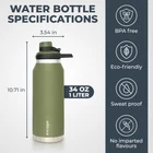 Introducing the 34oz ESCAPE Insulated Stainless Steel Water Bottle! You’ll never go thirsty on your next outdoor adventure with this premium quality water bottle; perfect for camping, hiking, sports, and more. Developed from the leading brands on the market such as any Water Bottle Stainless Steel, you can trust you are getting top-of-the-line quality with Durable 18/food grade stainless steel construction which offers superior temperature retention and an unrivaled durability that is ideal for everyday use. Take your hydration needs anywhere you go; from the gym to work or while exploring nature. This large water bottle provides a large capacity – 34oz – of cold liquid so you can keep hydrated all day long while Reusable construction means no need to worry about single-use plastic waste or constantly repurchasing separate cups. A slim design fits comfortably in most cup holders or saddle bags so you don’t have to sacrifice convenience. Your drink will remain ice cold for up to hours or piping hot up to hours without any condensation due to a leak proof double wall construction, significantly reducing sweat and heat loss. When it comes time to clean up this water cup it's easy: elements like BPA Free Drinkware and Dishwasher Safe Construction makes cleanup a breeze while still protecting against damage or corrosion. Buy now and get your ESCAPE Insulated Stainless Steel Water Bottle today! Let's go! PREMIUM MATERIAL: Crafted from high-quality 18/8 food-grade stainless steel, ensuring both durability and a stylish look. Made for sports, gym, and outdoor activities. This 1 liter (34 oz) metallic water bottle will keep you moving. WIDE-MOUTH DESIGN: allows for easy ice insertion, easy to clean, sweatproof, and dishwasher safe. It also ensures no spills and leak proof, making it perfect for your everyday activities. BPA-FREE and ECO-FRIENDLY: Manufactured BPA-Free, making it safe for both you and the environment. Choosing this reusable water bottle is a healthy and eco-conscious decision. SPORTS INSULATED PERFORMANCE: With its ability to keep drinks hot or cold for hours, keeping them hot for up to 12 hours, cold for 24 hours & icy water for 36 hours. It's perfect for hot summer days and chilly winter outings. SATISFACTION GUARANTEE: This is a high-quality water bottle with no straw, perfect for your everyday routine and even a memorable gift! Which is better than an ESCAPE 34 oz (1L) water bottle that can also be the perfect gift for gym lovers and your closest loved ones?