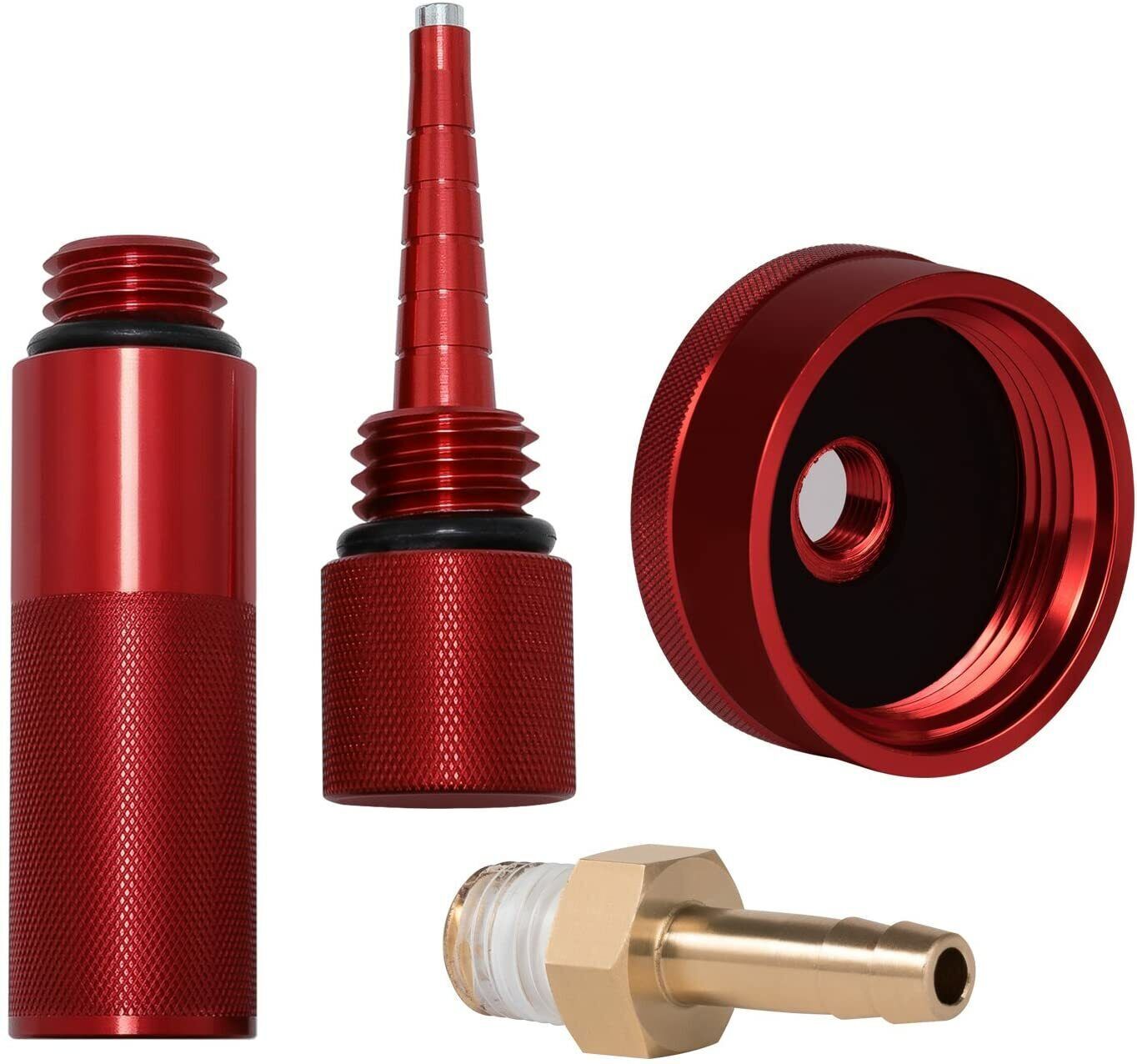 Product Features: 1.UPGRADE EXTENDED GAS CAP: The upgrade honda extended gas cap equipped with a brass hose fitting, which made of high quality brass material, it has good performance on corrosion and vibration resistance, ductility at high temperatures, and low magnetic permeability. Combined with the superior aluminum gas cap, they are the nice accessory for your generator. 2.PERFECT DESIGN: This brass hose fitting is made of brass and has a 1/4" male end for connecting to threaded pipe conforming to National Pipe Thread (NPT) standard and a barbed fitting for a hose with a 1/4" inside diameter. It perfectly fits for Honda generator gas cap, having good service together for your generator. 3.GREAT FUNCTION: The upgrade extended gas cap with brass hose fitting is for a fixed connection between plastic or rubber hose and pipe that ensure a tight and leak free seal for adding gasoline into your generator from a secure distance with safety. 4.WIDELY APPLICATION: For Honda Generator EU1000 EU2000 EU3000 EU1000i EU2000i EU3000i Handi, Champion 2000watt, Westinghouse 2200watt, WH2200iXLT. Product Description: UPGRADE YOUR HONDA GENERATOR! High standard quality - CNC Billet Aluminum gas cap with brass hose fitting ensures it has a long service time. Made of premium CNC Billet Aluminum with stylish anodized red coated finish and the high-quality brass hose fitting are greatly effective for rust, corrosion, low and high temperature and fade protection with strong durability. Superior extended gas cap equipped with high brass hose fitting to upgrade your Honda generator. The extended gas cap has a machined 1/4" NPT port on the top and includes 1/8" thick Buna N fuel resistant sealing gasket. And the brass hose is 1/4" hose inside diameter x 1/4" male NPT. They provide the positive connection and improve the sealing and safety when using your Honda generator. Package included: 1x red upgrade extended run gas cap(with brass hose fitting) 1x oil change funnel 1x magnetic oil dipstick