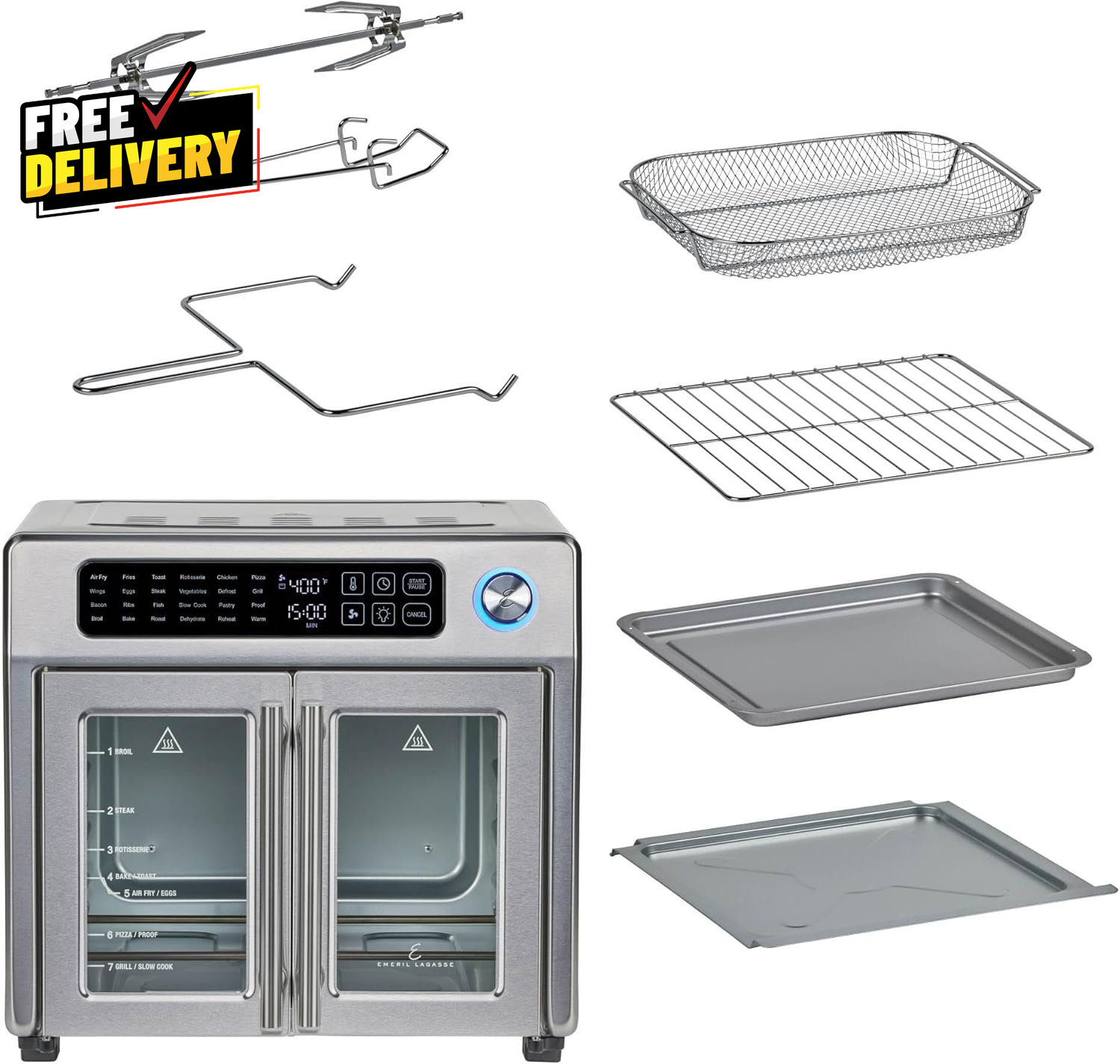 ultimatesavvyshop New Arrivals Add to Favorite View Feedback Contact Extra Large French Door Air Fryer Toaster Oven 26QT 24 Functions Stainless Steel ? PLEASE CONTACT US FIRST BEFORE TAKING ANY ACTION ? If you face any kind of issue , please reach out to us directly . Especially before leaving Negative Feedback, opening an “Item Not Received” case, or starting a Return . ? We are always happy to assist and resolve any problem quickly and professionally! If you have any questions or require assistance, please don’t hesitate to reach out. Description Item model number 4-00675-02X-VN Capacity 24.6 Liters Control Method Touch Has Nonstick Coating No Max Temperature Setting 500 Degrees Fahrenheit Min Temperature Setting 75 Degrees Fahrenheit Output Wattage 1700 Watts Controller Type Touchscreen Product Dimensions 16.9"D x 15.8"W x 14.8"H Material Stainless Steel Outer Material Stainless Steel Model Name Extra Large 26 QT French Door Air Fryer Oven Air Frying Technology True Is Dishwasher Safe No Item Weight 26.5 pounds Special Feature Automatic Shut-Off, Programmable, Temperature Control, Timer Color Stainless Steel Wattage 1700 watts Global Trade Identification Number 10752356835689, 20752356835686 Voltage 120 Volts Recommended Uses For Product Air Fry, Bake, Broil, Dehydrate, Roast Size Extra Large A VERSATILE AIR FRYER AND MULTI-COOKER COMBO: Elevates practically any meal, from air frying quick after-school snacks to roasting for large gatherings. PERFECTLY DONE TOAST: Oven turns off automatically when the toast count-down timer ends, no burnt toast! Indicator light is red while toasting, blue when timer ends and oven turns off. Place rack at indicated toast position for ideal results. DUAL-SPEED FAN: Golden fried crisping at its finest with 360º superheated air circulation for your homemade cooking. 26-QUART CAPACITY: This extra-large 26-quart countertop toaster oven is ideal for preparing meals for 4–6 people. Features a usable cooking space of 14" L × 13" W × 7" H, allowing you to rotisserie up to a 6-lb chicken or bake a 12” pizza with ease. STAINLESS STEEL EXTERIOR: A stainless-steel exterior provides a beautiful aesthetic to any kitchen, taking your party hosting to the next level. And elegant French doors open with a single pull; interior light allows you to monitor food ABOUT US Prior to making any purchase from our store, we’d like to introduce ourselves. My name is Shahzad Yaqub , and I am the proud owner of Epic Emporium Deals , located in the great state of Illinois, USA. I have been an active and trusted eBay seller since Jan 14, 2025 . At Epic Emporium Deals , we are committed to offering competitive prices and top-quality products . Our extensive collection features a wide variety of items, including media such as books, movies, music, and games , as well as electronics, toys, sporting apparel, clothing, tools , and general home and garden essentials —and much more! Your satisfaction is our priority, and we look forward to providing you with an exceptional shopping experience. SHIPPING We are always working hard to ensure your package arrives as soon as possible. Please understand that some factors like weather, high postal traffic, and the performance of shipping companies are outside of our control. We offer free shipping to the lower 48 states and ship within 2 business days of payment, usually sooner. We do not accept P.O. Boxes. Please provide a physical address. For shipping outside of the continental USA, we only use eBay's Global Shipping Program. The item is shipped to IL and then sent to the rest of the world. International customers are responsible for all duties and taxes. Continue to 'check out' to calculate costs for shipping the item to your country. Messages regarding eBay's Global Shipping Program MUST be directed at eBay EXCLUSIVELY. RETURNS We do not accept returns under normal circumstances. However, we will gladly consider a return if the item is received broken or if the wrong size is sent to you. In all other cases, returns will not be accepted. CUSTOMER SATISFACTION We try our very best to make sure every customer is completely satisfied. If there's a problem, message us! We're happy to help.