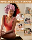 Adjustable Satin Bonnet for Sleeping, Double Layer Silk Bonnet with Tie Band ...