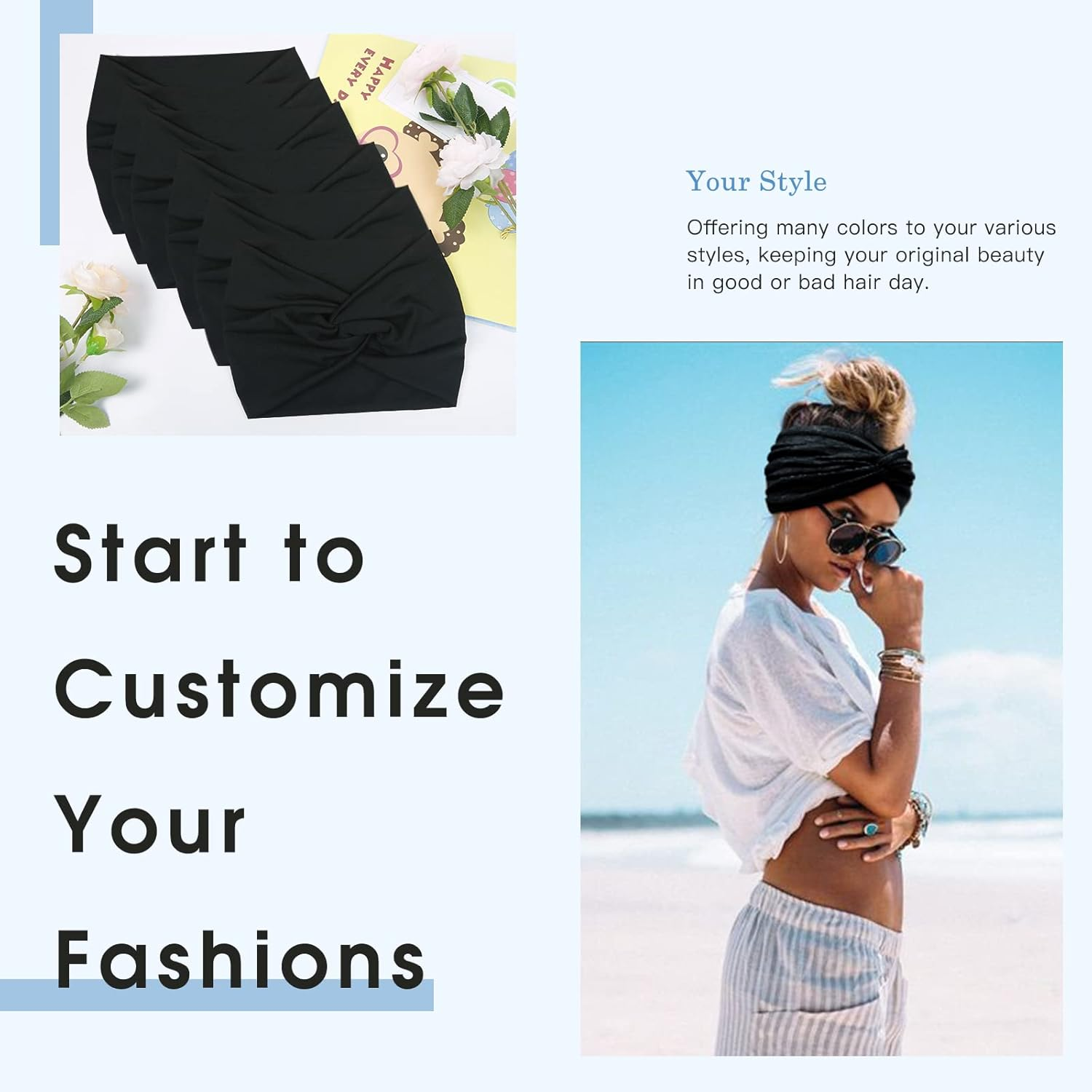Love this headband! The extra-wide design stays put without slipping and the soft, stretchy material is so comfortable—no headaches even after hours of wear. The boho knot adds a stylish touch, and the breathable fabric keeps me cool. Perfect for any hair type or head size!