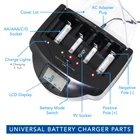 Universal Charging: Give your household batteries more life with this Universal Battery Smart Charger (Mark I) built with 4 independent charging slots to simultaneously charge AA/AAA/C/D and 9V batteries Compatible With: Sliding spring-loaded negative poles on the dock can adjust to differently sized batteries and includes a switch button that changes modes between Ni-Cd, Ni-MH, and Alkaline/RAM charging Charge Protection: Built-in protection circuit prevents batteries from overcharging, over-discharging and over-heating while stopping sudden current fluctuations for a maximized battery charge Smart Display: LCD Display shows a clear and fast reading of the battery mode and charging status of working rechargeable batteries while also being able detect defective or non-rechargeable batteries Backed by Company: provides 1-Year Warranty and Customer Service Support on all of our brand products; Package includes 1x Charger Unit, 1x AC Power Adapter, and 1x User’s Manual (batteries and other accessories not included!)