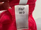 Elevate your lingerie collection with this F&F balconette bra in a beautiful shade of red. The bra features lace fabric with embroidered accents, adding a touch of elegance to your intimates. The underwired bra is designed with a hook and eye closure for easy wear and removal. This bra is perfect for any modern woman looking for a comfortable and stylish addition to her wardrobe. It is machine washable and semi-opaque, ensuring both privacy and durability. Get the best of fashion and comfort with this F&F bra.