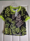 VR46 T-Shirt Vr46 Riders Academy Fila Collection, size large, black. Measures 20.5" from armpit to armpit and measures 23" from top of neckline to bottom hem on the back.