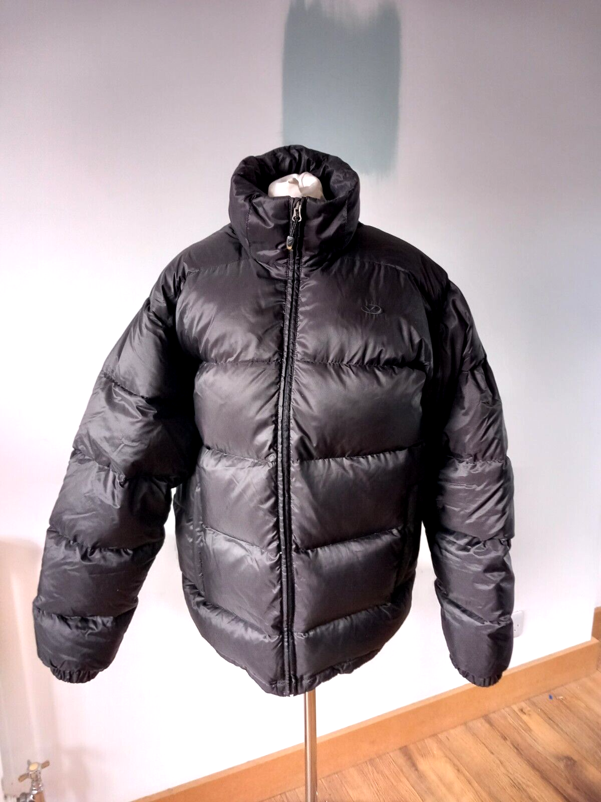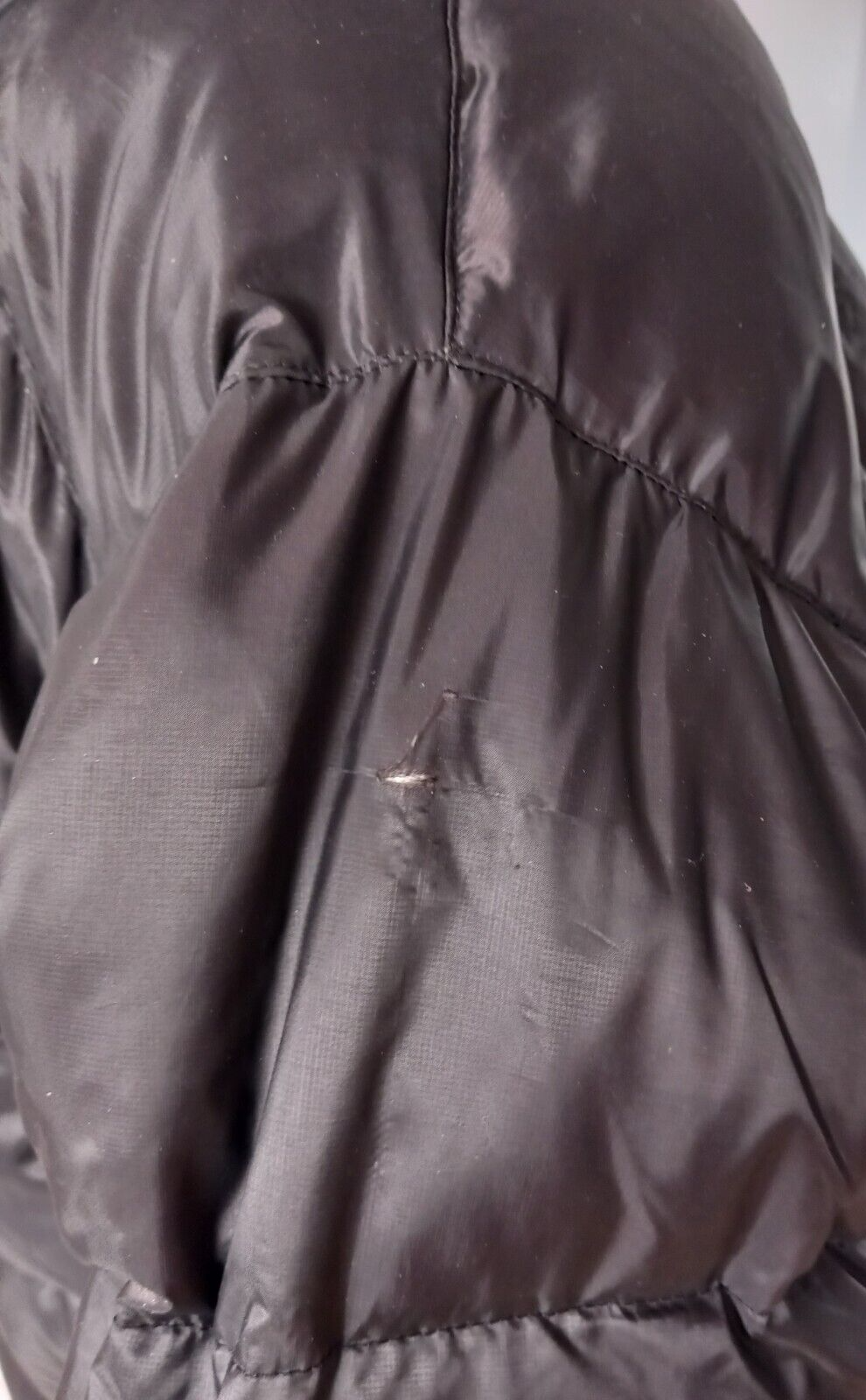 Gently used condition with no hood and one tiny rip on top left sleeve. High neck, zip closure, zip pockets. Nylon puffer jacket super warm and cosy. Insulated with feather and down. Measures 25" pit to pit, 36" long nape to hem, sleeve 26".