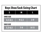Fortnite Boys Male Assorted Print 6 Pack No-Show Style Socks. Size Small, please view size chart in photos Fits boys shoe size 4 1/2 - 8 1/2 Equip your little gamer for battle and everyday life with this 6-pack of Fortnite socks. Six colorful designs included in this pack allows you to choose a different pair each week day. The soft construction keeps your feet comfortable. No-show sits just below the ankle. Size Large. 98% Polyester (30%-40% Recycled Polyester) and 2% Spandex. Fortnite Brand New with original tags