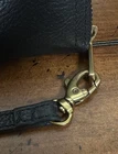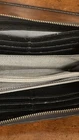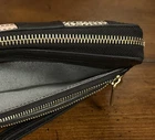 This leather clutch features RFID SFETY, 12 credit cards, slots an interior zip pocket, to bill compartments, 3 gusseted pockets, and a detachable wristlet strap. this is the perfect combination of unique and sleek just the right amount of cards, slots, coin sections, and open areas for notes, stamps, and receipts. It goes with everything! The colors are quirky, which is fun to see an easy to distinguish from other wallets. This clutch can fit up to an iPhone 14 Pro Max and Samsung Galaxy S 22 ultra. The interior material is 100% polyester, polyurethane. It has a great zipper that works smoothly & a detachable wristlet strap with a lobster clasp in a bronze gold color. The exterior material is made out of leather polyurethane and suede trims.