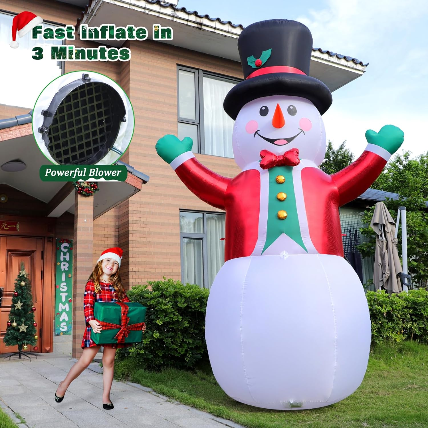 【⛄Giant Christmas Inflatable Snowman⛄】The cute 12FT tall Christmas inflatable snowman wears an adorable top hat and gorgeous red suit, raising both hands with a sweet warm smile to express welcome. It has built-in bright led lights to illuminate your yard lawn garden porch at night. Your friends and neighbors will be attracted by the eye-catching inflatable snowman. It’s one of the ideal choices for Christmas event decorations, Christmas Eve night decorations, Christmas outdoor yard decorations. 【⛄High-Quality Material & Durable⛄】The FunFanso inflatable snowman is made of 190T high-density thickened polyester material, which is IP44 waterproof and snowproof. It resists punctures from sharp or sturdy objects. FunFanso’s excellent sewing process enhances the durability of this outdoor inflatable decoration. What’s more, the vibrant colors won’t fade over time, allowing for repeated use. 【⛄Stable and Secure Enough⛄】This giant inflatable snowman is equipped with 8 ground stakes, 8 ropes to keep it fixed firmly from being blown away by wind, and built-in heavy sandbags for bottom fixed without support when there is no wind. This greatly improves the stability of this inflatables snowman, which is designed to withstand unpredictable weather easily. 【⛄Stable and Secure Enough⛄】This giant inflatable snowman is equipped with 8 ground stakes, 8 ropes to keep it fixed firmly from being blown away by wind, and built-in heavy sandbags for bottom fixed without support when there is no wind. This greatly improves the stability of this inflatables snowman, which is designed to withstand unpredictable weather easily. 【⛄Ideal Christmas Gift⛄】Each FunFanso Christmas inflatable decoration is packaged in a beautiful gift box, making it as a thoughtful Xmas present for our loved ones. FunFanso Christmas inflatables are certified by FCC and CPC, and the motor is certified by ETL. This adorable inflatable snowman will be a safe and delightful gift for everyone. Product description