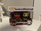 This product is a Funko Pop! 2-pack featuring Freddy Krueger and Jason Voorhees from the movie "A Nightmare on Elm Street" and the "Friday the 13th" franchise. The figures are made of vinyl and are vaulted, adding to their collectible appeal. This set is part of the Movies collection by Funko, perfect for fans of horror films.
