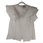 Women’s Sheer Fairycore Ivory Sleeveless Ruffle Coquette Button-Up Blouse Shirt Layered sheer ruffle detail – almost butterfly-like Sleeveless Sheer throughout Pear button down front Tie at neck over V-neck Solid print Approximate measurements (laid flat): • Size: no tag, please reference measurements; model is typically a S, 34B bust, but this fits pretty well • Color: cream / ivory / off white • P2P: 17” • Length: 23” • Material: no tag but feels like a polyester or polyester cotton blend • Condition: pre-owned; excellent pre-loved condition, no tears or stains – see photos for condition Ships next business day. Offers welcome! Keywords: feminine, girlhoodcore, cottagecore, Summer, Spring, bridal, neutral, Maximalist, festival, party, concert, daytime, sexy, sheer, lightweight, ruffle, coquette girl, whimsigoth, fairycore, whimsical, whimsygoth, holiday, Easter, casual, cute, romantic, flirty, classic, chic
