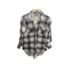 This Fashion Nova shirt is perfect for any occasion! With its blue, white, and gray plaid pattern and long sleeves, it's a stylish addition to any woman's wardrobe. The button-up design and collared neckline add a touch of sophistication, while the casual sleeve type and regular fit make it comfortable for all-day wear. The shirt is available in size M and is made for women. Its brand name is Fashion Nova, and the character it features is Nova. The shirt is perfect for those looking for a versatile and fashionable addition to their wardrobe. in very good condition length 22" chest width 17" All Measurements Are Approximate Please email us with any questions! ** LIKE THE ITEM BUT NOT THE PRICE, REASONABLE OFFERS ACCEPTED