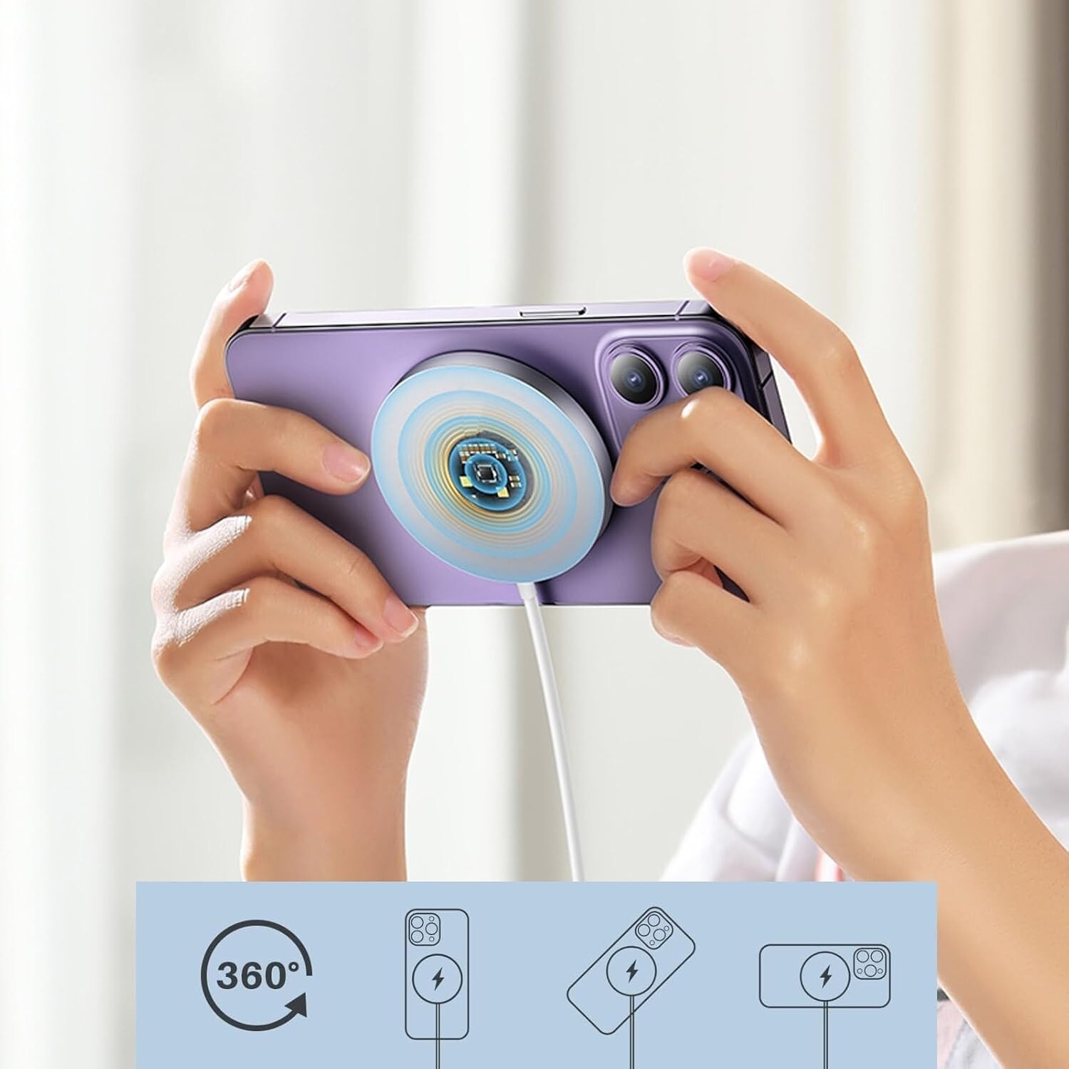 About this item 【Compatible for iPhone 16/15/14/13/12】Compatible with iPhone 16/16 Pro/16 Plus/16 Pro Max,15/15 Pro/15 Plus/15 Pro Max, iPhone 14/14 Pro/14 Plu/14 Pro Max, iPhone 13/13 Pro/13 Pro Max/13 mini, iPhone 12/12 Pro/12 Pro Max/12 mini, AirPods Pro 2/Pro/3/4, AirPods with magnetic Wireless Charging Case,and ✅Other iPhone models with magnetic cases also support magnetic charging. *NOTE: ❌Regular cases are not supported as it will weaken the magnetic attraction. 【USB-A/USB-C Dual Input + 3.9FT Cable】The high-quality metal material offers good performance with longer spanlife. Magnetic Wireless Charging Station Only 0.28inch/7mm (thickness), with 3.9ft integrated multi-port cable, just like the smallest & lightest wireless charger. Free up more space and easy to carry. Recommended to use with 18W, 20W or higher USB-C & USB-A Power Adapter (Not included in the packaging). 【Stronger Magnetic Attraction & Easy Alignment】 Snap & Charge in 1s.Magnetic Wireless Charger pad Built-in N52 strongly attract magnets, perfectly aligned magnets attach to your AirPods or iPhone Provides faster wireless charging. Just put the phone close to it, and the phone will be attached automatically, no need to spend time to find the exact charging position. 【Intelligent Protection】Built-in intelligent chip,offering you a better and safer charging experience. it only takes 2.5-3.0 hours to fully charge your mobile phone from 0% to 100%. With comprehensive intelligent protection technology to achieve charging faster and safer.As with magnetic Charger, your iPhone or magnetic wireless charger mat might get slightly warmer while your iPhone charges. 【Smart indicator light】At night when your phone is charging the soft blue breathing light comes on and then turns off automatically. This magnetic wireless charger enjoys an 18-month warranty. Any concerns or questions about this wireless charge, please feel free to contact us through the Amazon message center, our professional customer service will provide you with a satisfactory solution.