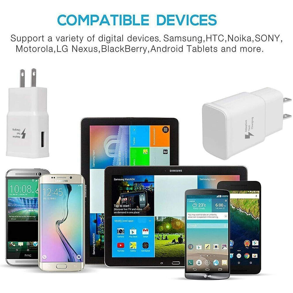 Feature: Adaptive rapid fast charger for Samsung galaxy Models High efficiency and low energy consumption. Protective circuit to prevent overcharging. To use it with any USB devices, simply connect a USB cable (not included) to your device and then to the charger module, easy to use. Compatible with most of the USB enable devices including Samsung, Apple iphone, iPod, Microsoft Zune, cell phone, PDA, digital camera / camcorder and more. Please make sure your phone support fast charge. Specification: Color:Black/White Fast Charger Input/Entree:100-240V-50-60 Hz 1.0 A Out put 12V=2.1A 9.0V=1.67A Or 5V=2A Dimension: Approx.8.0(L) x 3.5(W) x 2.1(H)cm Shell Material: Plastic Plug: US Compatible with: *Samsung Galaxy Note 10 S8 S9 S10 S20 Note 20 *Samsung Galaxy Note 7 Note 8 Note 9 Samsung Galaxy S8 / S8 Plus Galaxy S9 / S9 Plus Galaxy S10 / S10 Plus / S10 e *Google Nexus 5X Google Nexus 6P Google Pixel *BlackBerry DTEK60 BlackBerry KEYone (DTEK70, Mercury) *Galaxy A7 (2017) SM-A720F Samsung Galaxy C9 Pro (SM-C900F) Samsung Galaxy A5 (2017) SM-A520F Samsung Galaxy A3 (2017) SM-A320F *Sony Xperia XZ Sony Xperia X Compact F5321 Sony Xperia XA1 Ultra (G3221,G3223,Ultra Dual,G3212,G3226) Sony Xperia XZs (G8231,Dual) Sony Xperia L1 (G3311,G3313,G3312) Sony Xperia XZ Premium (G8141,Premium Dual) Sony Xperia XA1 ( G3123, XA1 Dual *Xiaomi Mi 5 Xiaomi Mi 4s Xiaomi Mi 4c Xiaomi Mi 5s Xiaomi Mi 5s Plus Xiaomi Mi MIX Xiaomi Mi Note 2 Xiaomi Mi 5c *Microsoft Lumia 950 Microsoft Lumia 950 XL *ZTE Axon Max ZTE Grand X 3 ZTE Axon 7 ZTE Grand X Max 2 ZTE Zmax Pro, Z981 ZTE Axon 7 Mini ZTE Grand X 4 ZTE Blade V8 Pro (ZTE Z978) HP Elite x3 *LG G5 LG V20 LG V30 LG G6 LG G7 (H870) Gionee S6 *Lenovo Zuk Z1 Lenovo Phab 2 Pro Lenovo YOGA Tab 3 Plus Lenovo Miix 510 *OnePlus 2 OnePlus 3 OnePlus 3T *Nokia N1 *Macbook 12"" *Asus ZenPad S8 Asus ZenFone 3 Asus ZenFone 3 Deluxe Asus ZenFone 3 Ultra Asus ZenPad Z8 Asus ZenPad Z10 ZT500KL Asus ZenFone 3 Zoom (Asus ZE553KL) Asus ZenFone AR (Asus ZS571KL) *ARCHOS 50 Graphite ARCHOS 55 Graphite *Huawei P9 Huawei P9 Plus Huawei Nova Huawei Nova Plus Huawei MediaPad M3 Huawei Mate 9 Porsche Design Huawei P10 ( VTR-L29) Huawei P10 Plus *HTC 10 / HTC One M10 HTC Bolt HTC U Play HTC U Ultra honor Note 8 *Meizu Pro 6 Meizu MX6 Meizu M3 Max Meizu PRO 6 Plus Meizu M3X *Motorola Moto Z Motorola Moto Z Force Motorola Moto Z Play Droid Motorola Moto Z Play" Package Includes: 1X The option as your choose