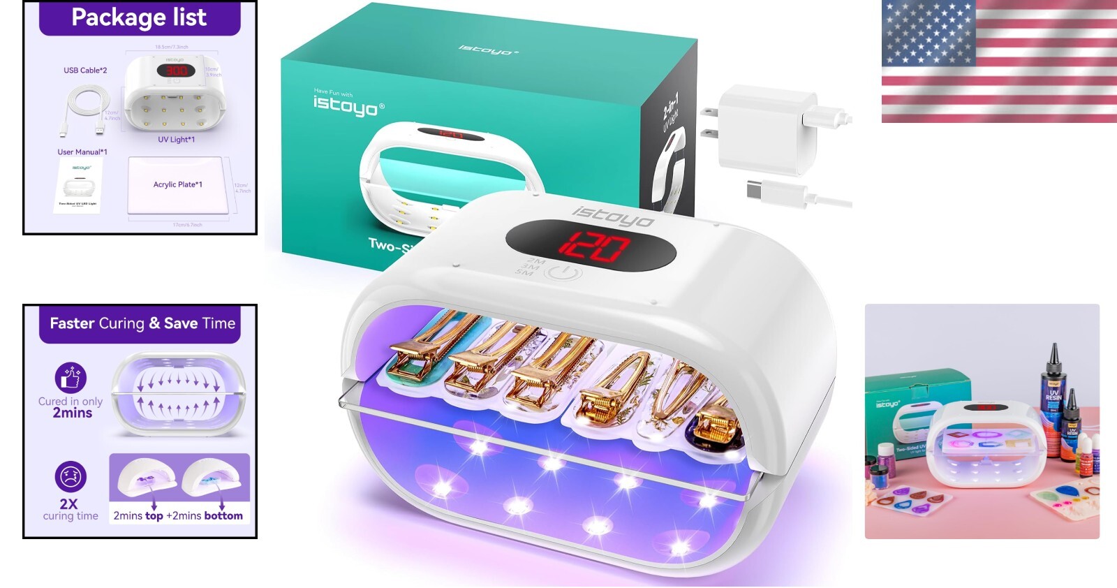 Efficient UV Resin Curing Lamp - Dual Wavelength 365+405nm for Quick Results < class="slides"> ‹ › ‹ › ‹ › ‹ › ‹ › ‹ › ‹ › ‹ › ‹ › ‹ › ‹ › Efficient UV Resin Curing Lamp -Dual Wavelength 365+405nm for Quick Results Features: Double-Sided Curing Together: Adopts a double-sided design to cure the top and bottom sides evenly at the same time. Shortens curing time up to 2x for a superior resin crafting experience. Digital Display & Longer Time Modes: Clear digital display with three settings: 2, 3, and 5 minutes for customized curing. 2-in-1 Design: Detachable for both sides curing or single-sided curing, catering to diverse creative needs. Dual Wavelength: Specifically tested wavelengths of 365+405nm for optimal and powerful curing results. Benefits: Experience faster curing times, enhancing your productivity. Easy to set up with a user-friendly digital interface. Versatile usage for various resin crafting projects. Ensures the integrity and performance of UV resin. Lightweight and portable, perfect for at-home crafting or professional projects. Why choose the Efficient UV Resin Curing Lamp? Transform your resin crafting experience with our Efficient UV Resin Curing Lamp. The dual-wavelength technology provides powerful curing, allowing for quicker results without compromising on performance. Enjoy the convenience of dual-sided curing and choose between three customizable time settings tailored to your creative needs. This lamp is perfect for artists and hobbyists alike, whether you are working on intricate designs or simple detailed projects. Don't let long curing times hold back your creativity—choose our UV Resin Curing Lamp for efficiency and excellence. Order today and embrace a new era of resin crafting! Shipping Free & Fast Shipping - We offer free shipping to most of the USA with a normal delivery time of 3-7 days. However, due to the current situation, additional delivery time (up to 3 weeks) may be required for some items. Alternative Carriers - We may use alternative carriers (e.g. USPS, FedEx, UPS, etc.) to ensure your package arrives safely and on time. Due to the use of multiple carriers, we are unable to provide a tracking number automatically. Handling Time - Orders are processed and shipped within 1-2 business days of receiving cleared payment. Shipping Restrictions - Shipping to Alaska, Hawaii, Puerto Rico, Guam, and other US territories may incur shipping charges or delivery restrictions. Please contact us before ordering, or your order can be refunded/cancelled. State Restrictions - There may be restrictions based on your state of purchase. For example, certain items may not be shipped to California due to state regulations. Contact for Tracking Updates - If you require tracking updates or have any concerns about the delivery of your order, please feel free to contact us, and we will be happy to assist you. Return 30-Day Hassle-Free Returns - We want you to be completely satisfied with your purchase. If you are not, you can return the item within 30 days of receiving it for a full refund or exchange. Easy Return Process - To start a return, simply contact us and we will provide you with a prepaid return shipping label and detailed instructions. Restocking Fee - There are no restocking fees for returns. However, the buyer is responsible for return shipping costs if the return is not due to a seller's error. Refund Processing Time - Refunds will be processed within 5 business days of receiving the returned item in its condition. Payment We accept all major credit cards, PayPal, and Apple Pay for your convenience. Your payment information is secure and encrypted to ensure a safe and seamless transaction. Please complete your payment within 3 days of purchase to avoid any delays in shipping. Feedback Your feedback is extremely important to us. We strive to provide the best products and customer service possible. If you are satisfied with your purchase, please take a moment to leave us a positive review. If you have any concerns or issues with your order, please contact us before leaving negative feedback. We are committed to resolving any problems and ensuring your satisfaction. Contact Us If you have any questions or concerns, please feel free to out to our customer support team. You can contact us through the eBay messaging system. We are available Monday to Friday, 9:00 am to 5:00 pm EST, and we will do our best to respond to your inquiry within 24 hours. Buy it now and enjoy a pleasant shopping experience! Unit Quantity: 12 Color: White