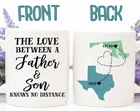 Father's Day Gift The Love Between Father And Son Knows No Distance Father's Day Product Details.. This high quality 11oz. ceramic white mug has a premium hard coat that provides crisp and vibrant color reproduction sure to last for years. Perfect for all hot & cold beverages. The highest quality printing possible is used. It will never fade no matter how many times you wash it. Material: 100% Ceramic. Print both sides. Dishwasher and Microwave Safe. High Gloss + Premium White Finish. Printed in the U.S.A. Personalized & Custom. We support personalized and custom mug to add custom, when placing an order, you can add notes to the "order note" in shipping address section. Also you can contact us directly via message. Shipping Info. Ready to ship in 1 to 2 business days, All products are made-to-order and proudly printed in the United States. Shipped by USPS and DHL, You will receive your order in 5-7 days. Replace & Refund. All products are defective during shipping broken, chipped will be replaced free of charge. You are not satisfied with the product, we will refund 100% money to you. If any other issues arise, please do not hesitate to message, we would be more than happy to assist you.