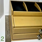The Faux Leather Multi-device Desktop Charging Station & Valet/Organizer is a versatile unit designed for universal compatibility with all brands and models. With a beige color and sleek design, this 12.5" wide station includes features such as a drawer for miscellaneous items, ample space for cords including a surge protector, and a covered shelf for additional storage. Perfect for keeping your desk tidy and organized, this desktop charging station is a practical and stylish addition to any workspace. Made in China, this unit offers convenience and functionality in one package. I have 2 of these available. I posted them separately as the other is in slightly better shape than this one. This unit is in acceptable shape as seen in pictures.