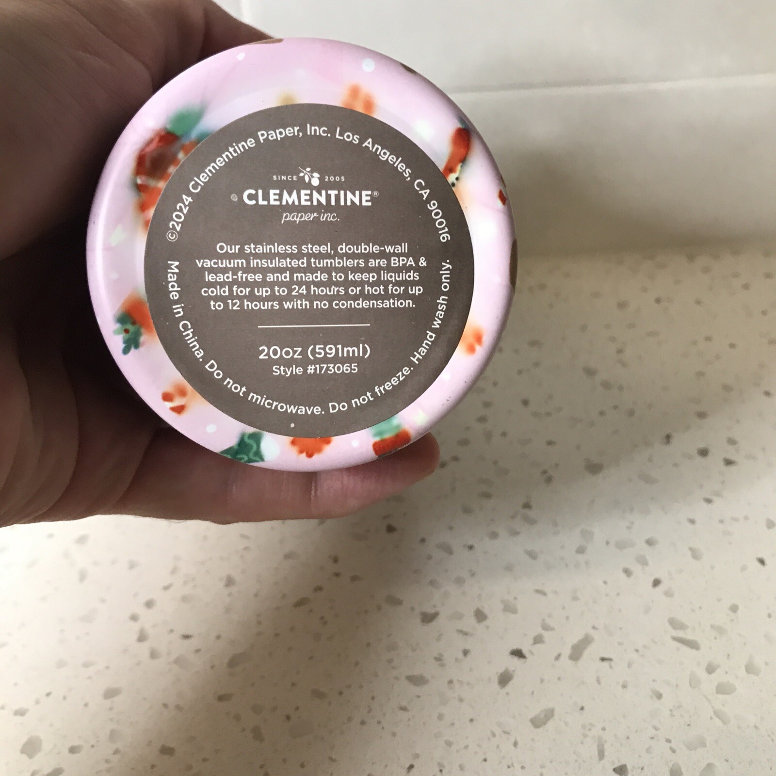 Out of packaging never used. Stay festive all day with this charming set of Clementine tumblers, adorned with whimsical Christmas-themed graphics that feature cats, dogs, and gingerbread designs. Crafted from durable stainless steel, these 20oz travel mugs are perfect for both hot and cold beverages, keeping your drinks at the desired temperature for hours. Their slide lock lids ensure a tight seal to prevent spills and leaks, making them ideal for busy individuals on the go. The tumblers are thoughtfully designed with a comfortable 7-inch height and a convenient 3.5-inch width, making them easy to hold and carry. With their vibrant pink and lilac hues, they add a touch of holiday cheer to your daily routine. Plus, with their BPA-free, double-walled construction, you can enjoy your favorite beverages without worrying about harmful chemicals. These thermal mugs are a great gift for teens and adults alike, or a lovely treat for yourself this holiday season.