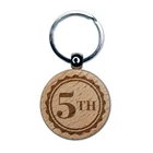 Fifth 5th Place Circle Award Engraved Wood Round Keychain Tag Charm