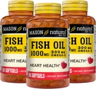 FISH OIL: Our once a day softgels contain 300 mg of omega-3 fatty acids per serving which may help support a healthy heart. DUAL ACTION: One serving of Fish Oil 1000 mg provides 300 mg of EPA and DHA omega-3 fatty acids. EPA in fish oil may help support normal, healthy cholesterol and triglyceride levels. HEALTHY HEART: Omega-3s may help support a normal blood clotting process in the body and healthy levels of cholesterol and triglycerides. One of the fatty acids, DHA, may contribute to the development and ongoing health of the central nervous system and brain function throughout life. NO BAD STUFF: This product contains fish (anchovy, mackerel, sardine) oil and soy. Gluten Free. Guaranteed no added Wheat, Milk, Egg, Shellfish, Tree Nuts. THE BEST VITAMINS FOR OVER 50 YEARS: For more than five decades, Mason Natural has produced quality vitamin supplements under cGMPs (current Good Manufacturing Practices) and adhering to US guidelines. All ingredients and finished goods are subjected to rigorous analytical testing, inspections and quality auditing. One of the most popular supplements for heart health is fish oil. Fish oil is a rich source of omega-3 fatty acids which may be helpful in supporting the health of the heart and cardiovascular system. Omega-3s may also help support a normal blood clotting process in the body and healthy levels of cholesterol and triglycerides. One of the fatty acids, DHA, is also important for the development and ongoing health of the central nervous system and brain function throughout life. Because fish oil is not part of a typical diet, a daily fish oil supplement may help provide the many health benefits of omega-3 fatty acids.