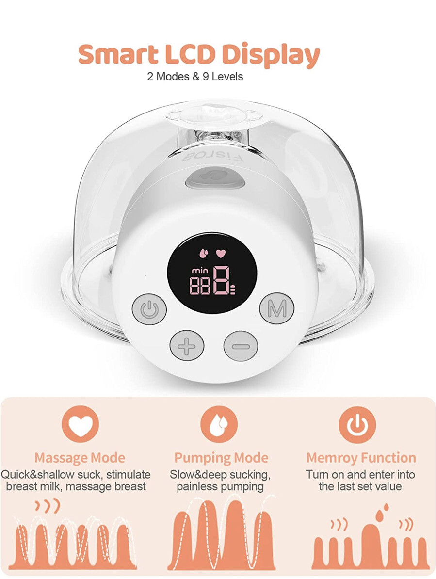 Wearable Breast Pump, Fisroa Double Hands Free Breast Pump with 2 Modes & 9 Leve. Wearable Breast Pump, Fisroa Double Hands Free Breast Pump with 2 Modes & 9 Levels Low Noise Wireless Electric Breast Pump with LCD Display and Memory Function 21/24mm Flange