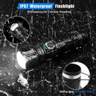 【990,000 LUMEN LED FLASHLIGHT】: Goreit flashlights high lumens utilizes upgraded XHP70.2 LED, which is stable and super bright and provides an incredibly powerful lighting, 10 times brighter than other normal led flashlights. A 120 square meter room can be illuminated without any problems, you can also focus on objects up to 1640FT away. This flashlights high lumens rechargeable is an ideal gift for mate, family, friends,colleagues, etc. 【USB RECHARGEABLE FLASHLIGHT & LONG WORKING TIME & POWER INDICATOR】: This rechargeable flashlight has been completely improved to shorten the charging time and extend the service life, which can provide up to 12 hours (Low mode) of powerful, non-diminishing brightness. Built-in USB charging interface, flash light can be charged through socket and laptop, convenient for indoor and outdoor charging. The LED display shows the power level exactly(25%, 50%, 75%, 100%). 【WATER RESISTANT & HEAVY DUTY FLASHLIGHT】: This IP67 waterproof flashlight is developed for rough handling and can withstand a fall of 5m or be temporarily submerged under water. This bright flashlight can even be frozen, run over by a truck, and it still works! Suitable for use in rain, snow, or emergency situations. The high powered flashlight made of aerospace grade aluminum can protect the convex lens from damage, and in emergencies it can also be used for Self-protection. 【ADJUSTABLE FOCUS & 5 LIGHT MODES】: This handheld flashlights has 5 lighting modes: High-Medium-Low-Strobe-SOS. You can turn off the rechargeable flashlights by long pressing the buttons for 3s in any mode. Depending on your needs, you can stretch the head of the flashlight to adjust the focus, freely choose the spotlight for remote viewing and the floodlight for large-area lighting. It is ideal for camping, hiking, climing, running, night walking, emergencies or the general household use. 【EXCEPTIONAL VALUE & BUY WITH CONFIDENCE】: Package contents: 1x Goreit super bright flashlight rechargeable with charging cable, 3x AAA Alkaline battery, 1x flashlight holster, 1x gift box and user manual. We have carefully checked all items before shipping and make sure the product is working properly, if you have any questions please contact our great customer service for a best solution within 24 hours. Product Description Goreit G1476 led flashlight rechargeable with 990,000 lumens can easily illuminate a distance of almost 500m and has a service life of up to 100,000 hours. Provides people with a reliable and convenient lighting tool. Super bright LED flashlight with high lumens and large range. Made of high quality aluminum alloy material, water resistance, super bright light and long service life, this high powered flashlight is great for camping, hiking, night running, fishing, climbing, hunting and some outdoor activities, Including family emergency (in the event of a power outage, circuit maintenance, etc.). ADJUSTABLE FOCUS Goreit G1476 flashlight telescope zoom allows you to choose the focus between spotlight and floodlight. Spotlights for remote observation and floodlights for large-area illumination. The spotlight for remote observation can easily illuminate a distance of nearly 500 m. HOW TO INSTALL? (Warning: do not remove the blue packaging) USB input and output USB CABLE INCLUDED, you can charge Goreit G1476 led flash light from your laptop, plus socket, computer. Unlike other led flashlight, Goreit G1476 led flashlight can prevent overcharging, which can protect the flashlights well. In addition, Goreit G1476 led flashlight can be used as emergency equipment to charge your devices in an emergency. 6 Advantages of Goreit G1476 Flashlight XHP70.2 LED Flashlight Super Bright The advanced XHP70.2 LED chip is built into the high lumens flashlight, stable and bright light, it can easily illuminate every corner of the whole yard. 990,000 lumens, 5000K daylight can illuminate things clearly within 500m, allows you to use it as a brightest long-range flashlight. High Powered Rechargeable Flashlight This High Lumen rechargeable flashlight can reach up to 12 hours (Low mode) working time; rechargeable flashlight and upgraded version of overcharge protection, the flash light will stop charging when it fully charged, so that you don't need worry about the safety issues when you forget the flashlight is in charging. LED Flashlight with 5 Light Modes 5 modes: High, Medium, Low, Strobe and SOS can meet your different occasion needs. Press the power button to toggle between the lighting modes. Press for 3 seconds to turn off the light in any mode. Rechargeable Flashlight with Power Display Our rechargeable Flashlight adds 4 small LED indicators 100% -75% -50% -25%, you always know exactly how much power and charge it in time. IP67 Waterproof and Durable Goreit G1476 led Flashlight is made of a durable aluminum alloy. It has high shock resistance and can withstand an impact from a height of 3 meters. With a waterproof rating of IP67, it can be used in various extreme weather conditions, but it cannot be submerged or immersed in water for an extended period of time. Rugged Design High-strength aviation aluminum alloy make it wear and hit resistance, it can protect you from danger in emergency situation.