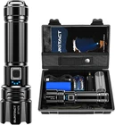 【990000 LUMEN LED FLASHLIGHT】: Sunitact ST1476 flashlights high lumens built-in advanced XHP70.2 LED chip, with a powerful 990000 lumens output, providing you the great light world you want, easily illuminates a 120 square meter room. we even can focus on objects up to 1000FT away, about the length of 3 football fields! And we can put all the parts in the gift box for easy carrying and storage. In additional, this bright flashlight is also an ideal gift for our friends or family. 【USB RECHARGEABLE AND POWER INDICATOR】: This rechargeable flashlights can provide up to 12 hours of runtime, with upgraded overcharge protection, it can be charged by usb cable(included). The flash light will stop charging when it fully charged, so that we don't need worry about the safety when we forget the flashlight is in charging. It can also charge the phone in an emergency. The power indicator above the flashlight helps you clearly understand the flashlight power (25%, 50%, 75%, 100%). 【ADJUSTABLE AND 5 LIGHT MODES】: This flashlights high lumens rechargeable has 5 lighting modes: High-Medium-Low-Strobe-SOS. According to our needs, we can stretch the head of the handheld flashlights to adjust the focus, freely choose long-distance observation and wide-range lighting. It is very suitable for camping, hiking, dog walking, fishing or any outdoor activities and emergency power-off backup. Long press for 3 seconds to turn off the light, no need to cycle all light modes. 【IP67 WATERPROOF AND PRACTICALLY INDESTRUCTIBLE】: Sunitact ST1476 IP67 waterproof LED flashlight is designed for rough handling. High-quality aerospace-grade aluminum alloy body protects the led flashlight rechargeable from rust or being scratched. After tests including freezing, underwater immersion and running over with a full-size truck and 10-foot drop, it still works! This high powered flashlight is durable enough in any situation, especially in rain, snow or emergency situations. 【FULL FLASHLIGHT KIT】: What you get: 1 x Sunitact ST1476 LED Flashlights High Lumens, 1 x USB charging cable, 1 x Lanyard and Flashlight holster, 1x Operating instructions and Gift box. We have carefully checked all flashlight rechargeable before shipment and ensured that the products are working properly. Most importantly, we provide 7*24 hours customer service. If you have any questions, please feel free to contact us. Product Description SUNITACT ST1476 SUPER BRIGHT FLASHLIGHT - LIGHT UP YOUR LIFE INSTANTLY! The adjustable focus of the Sunitact high powered flashlight allows you to choose the focus between spotlight and floodlight. Spotlights illuminate a longer distance, and floodlights illuminate a larger area. A stable and bright beam can be formed within 1000 meters. About Sunitact Sunitact focuses on the development, manufacturing and sales of outdoor sports lighting tools. We are brand sellers and our flashlights are sold all over the world. We continue to improve the quality of flashlights and provide customers with an excellent lighting experience. In any mode, we can press and hold the button for 3 seconds to turn off the flashlights high lumens rechargeable. Sunitact ST1476 XHP70.2 LED Flashlights High Lumens WHAT YOU WILL RECEIVE: 1 * Sunitact ST1476 Rechargeable Flashlights with Charging Cable 1 * Rechargeable Battery 1 *3 AAA Battery with White Battery Tube and Battery Holder 1 * Flashlight Holster and Lanyard 1 * Operating Instructions and Gift Box XHP70.2 SUPER BRIGHT FLASHLIGHT POWER DISPLAY & USB RECHARGEABLE WATER RESISTANT & VIRTUALLY INDESTRUCTIBLE ADJUSTABLE FOCUS & 5 LIGHT MODES SUPER HEAT DISSIPATION DESIGN POPULAR USE FOR HOME & WORK & OUTDOOR HOW TO INSTALL THE BATTERY? USB INPUT AND OUTPUT & POWER INDICATOR Connect the Cable (include) with all kinds of USB devices such as car sockets, computer, laptop,etc, it is convenient in any outdoor activities. Sunitact rechargeable flashlights can also be used as mobile power supplies to charge your device in an emergency. The power indicator can display accurate flashlight power (25%, 50%, 75%, 100%), and no longer have to guess the remaining power of the flashlight. XHP70.2 SUPER BRIGHT LED FLASHLIGHT Sunitact ST1476 LED flashlight adopts an upgraded version of XHP70.2 chip, which can provide up to 10,000 real lumens and incredible brightness. Its ultra-wide beam can illuminates the entire backyard effortlessly, and it can be focused up to 1,000 feet away. UPGRADED RECHARGEABLE FLASHLIGHT The rechargeable flashlights has been completely upgraded, the ultra-wide beam lasts for up to 12 hours of lighting in medium brightness mode. It provides overcharge, overdischarge, and overvoltage protection, super heat dissipation capacity, which is safer to use, and its service life can reach 100,000 hours. It takes about 6-8 hours to fully charge. 5 LIGHT MODES This high powered flashlight has 5 light modes: High/ Medium/ Low/ Strobe/ SOS, which can meet your various needs in daily life. Easy to change modes by pressing the switch button gently. Press for 3 seconds to turn off the light in any mode. IP67 WATERPROOF & DURABLE Made of high-quality aviation-grade aluminum alloy, it protects your flashlight from scratches, corrosion, rust and damage. IP67 waterproof, can withstand all kinds of extreme weather such as storm and heavy snow (do not immerse in the water for a long time). Goreit A IDEAL KIT FOR CAMPING, DOG WALKING, FISHING, HIKING, POWER OUTAGES, EVERYDAY USE, BACKUP, EMERGENCY, ETC、