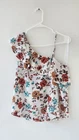The Mine Brand by Edge med Floral Strap Pullover Blouse is a sleeveless top with a round neckline and a paisley pattern. It features a strap shoulder accent and a keyhole button back closure. Made of polyester and spandex, this blouse is breathable and has a classic fit. It is perfect for travel, parties, or casual wear during the summer, fall, or spring seasons. The blouse is available in size medium and has a multicolor design.