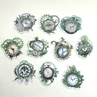 Flower Clock Stickers Green Junk Journal Collage Scrapbooking
