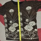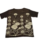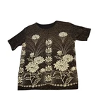 Flower Print Brown Womens Size Large Short Sleeve Abstract Art Shirt