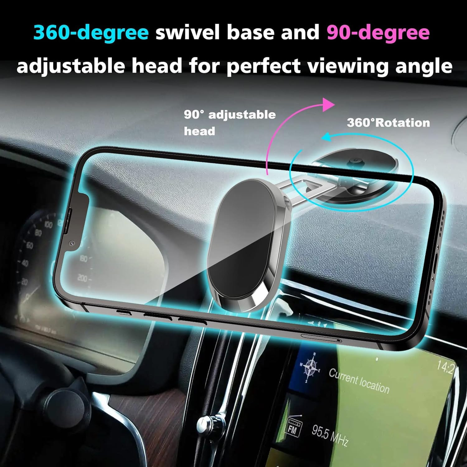 【360° Free rotation & Foldable】 Phone magnet for car with an adjustable swivel folding joint and folding arm, you can rotate your smartphone or device at your own will, providing the best viewing angle. Quickly pick and place with one hand, free your hands and make calls and GPS navigation more convenient. 【Stronger Magnet】 Cell phone holder built-in 6 N52 highest magnetic suction magnet, hold your phone firmly, never fall. Powerful suction keep your cellphone stay stably even when drive on a bumpy road. 【Super Stick Force】Magnetic cell phone holder car with 3M adhesive using the most advanced technology, solve the trouble can not stick, firmly fixed bracket. Easy to install, no tools required. [Wide Use] The magnetic car mount is used for the dashboard, instrument panel, desktop,wall and other applicable areas.magnetic phone mount compatible with 4-7 inch phones.such as iPhone 15/15 plus/15 Pro Max/14/14 Plus/14 Pro Max/13/13 Pro/13 Mini/13 Pro Max/12 Pro Max/12 Pro/12/12 mini, iPhone 11 Pro/11/xr/XS Max/XS/x and Samsung Galaxy Note 20/Note 20 Ultra/Note 10/Note 10+/Note 9, Galaxy S24/S24+/S23/S23+/S22/S22+/S22 Ultra/S20/S20+/S20 Ultra/ S10/S10+/S9+/S9 etc. 【Important Remind】1. Please When you use this universal car phone holder,don't forget to wait 12 hours before using, 3M adhesive needs time to cure for lamination. 2.To ensure strong magnetic suction, any device, must use the metal plate that comes with the product. 3.The metal plate will make the wireless charging function unusable,please remove the metal plate while charging or paste it below the wireless charging area.