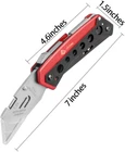 【Built to Last】- Aluminum alloy handle of Pocket Knife with black and red grit blasting for durability and longevity. Stainless Steel blade head is sturdy and rustless. Each Box Cutter come with 10 SK5 stainless steel blades which are hard and sharp. 【Multi-function tool】- This retractable Utility knife features a box cutter, small saw, fruit knife, flat head/Phillips screwdriver etc. Ergonomic comfort grip handle design for increase friction to anti slip and save labor. 【Quick Change Blade】- Quick-change blade mechanism for easy installing and releasing knife. This folding knife can Work quickly and easily. Lock the blade tightly and helps prevent injury. The utility knife blade is sharp enough to cut boxes, rope, carpet, plastic, leather, wallpaper etc. 【Safety Design】- With lock back and Liner lock release design, Pocket Knife safely locks the blade in place when in use. Secure folding mechanism makes sure no accident opening when Box Cutter in your pocket. Transparent plastic protector on the blade tip prevent hurting when not in use. 【Easy Carry】- Weight 6.76 OZ tactical knife with potable and convenience belt clip design easy to clip on your belt or backpack. You can carry the utility knife with the nylon sheath we give too. Such a useful EDC outdoor gadgets for office, home, work, hiking, camping.