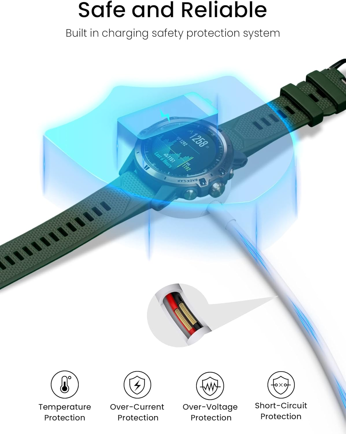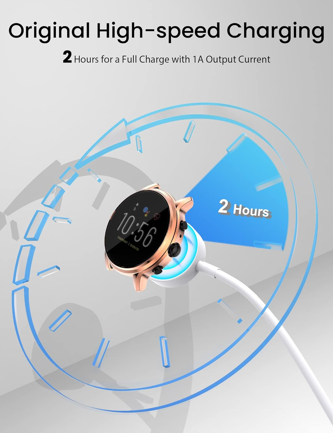 Proven Compatibility: Compatible with Fossil Gen 6 / Gen 5 / Gen 5E / Gen 4 / Michael Kors Rounway / Sofie HR / MKGO / Runway(MKT0002) / Emporio Armani / Skagen falster 2 / Misfit Vapor 2 / Diesel Guard 2.5 / Kate Spade Scallop 2 Smartwatch Fast Charging Speed: High-speed charging, do not worry this replacement charging cable is wasting your precious time Enhanced Durability: With 6000+ bend lifespan and reinforced cable joint, this charger is more than ready to handle the stresses and strains of daily use Safety & Reliability: The charging cable includes built-in over-current, over-voltage, short-circuit and over-temperature protection.Premium quality copper wire and pin gold-plated ensure charging safety and reliability What You Get: 1 pack 3.3Ft replacement charger for Fossil Gen 6 / Gen 5 / Gen 5E / Gen 4, our 12-month guarantee, and 24-hour friendly customer service Product Description Compatibility: -- Compatible with Fossil Gen 6 42mm / 44mm -- Compatible with Fossil Gen 5E -- Compatible with Fossil Gen 5 Carlyle /Gen 5 Julianna /Gen 5 Garrett /Gen 5 Carlyle HR -- Compatible with Fossil Gen 4 Explorist HR /Gen 4 Venture HR/ Gen 4 Sport -- Compatible with Misfit vapor 2/ Vapor X -- Compatible with Micheal Kors Access Runway (Model:MKT0002) -- Compatible with Micheal kors Access Rounway (Model:MKT5044 MKT5045 MKT5046 MKT5047 MKT5048 MKT5049 MKT5050 MKT5052 MKT5053 - MKT5054 MKT5055 MKT5056 MKT5057 MKT5058 MKT5060 MKT5065...) -- Compatible with Micheal kors Access Sofie Heart Rate (Model:MKT5061 MKT5062 MKT5063 MKT5064 MKT5066 MKT5067 MKT5068 MKT5069. not work with sofie without heart rate) -- Compatible with Kate Spade New York Scallop 2 -- Compatible with Diesel ON Fullguard 2.5 (Model: DZT9001) -- Compatible with Michael Kors Access MKGO (Model:MKT5070,MKT5071,MKT5072,MKT5073) -- Compatible with Skagen Connected Falster 2 (Model:SKT5100/SKT5102/SKT5103/SKT5104/SKT5105) -- Compatible with EMPORIO ARMANI Smartwatch with heart rate (Model:ART5006/ART5008/ART5009/ART5010/ART9005,etc.) Please Note: - NOT compatible with Misfit Vapor 1 - NOT compatible with Fossil Gen 3/Gen 2/Gen 1 - NOT compatible with Skagen Falster Gen 1, Kate Spade Scallop 1 - NOT compatible with Michael Kors Access Gen 3 Sofie MKT5022 (keine Herzfrequenz) - NOT compatible with Michael Kors Access Runway MKT5054 (keine Herzfrequenz) - NOT compatible with Michael Kors Runway/ Lexington/ Bradshaw (Modellnummer MK-Serie) Specification: - Materials: PC+ABS (Recharge Stand), PVC (Cable) - Cable Length: 3.3 ft./100 cm - Input: 5V / 1000-1500 mAh - Output: 5V/ 1000 mAh Tips to help you protect your smart watch better: Charging your watch before the battery runs down. If your watch show "can't charge. watch need to cool down" during charging, please no worry, it is normal and will re-charge after 15 minutes. We suggest to use computer, laptop or power bank or use 5V/1A adapter to charge (*Do Not use quick charger to charge which voltage/current over 5V 1A )
