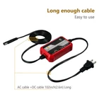 Automatic Battery Charger & Maintainer: 1A 12V smart battery charger perfect for SLA / VRLA / GEL CELL / AGM / WET lead acid batteries. It is a battery maintainer, trickle charger, float charger, and battery desulfator, also complete 4-step charging program (Initialization, Bulk Charge, Absorption Mode, Float Mode). Ultra Compact & Practical: The battery charger is compact and lightweight like the phone, long enough ac cable+ dc cable 102inch long, two types of dc output cable with either the ring or alligator connectors to use. 3.9 x 2.4 x 1.25inchs, 10.5oz. Widely Compatible: Perfect suitable for cars, golf cars, motorcycles, scooters, lawn mowers, ATVs, UTVs, tractors, trucks, SUVs, RVs, boats, PWCs, jet skis, snowmobiles, classic cars, children's toys and more. automatically switches to float, maintenance voltage after fully charging the battery. Intuitive led indicators provide visual state-of-charge feedback and diagnostic information, green is power light; green with red means charging; green with yellow means fully charged. Multi Safety Protections: Safely charged avoid overcharge in hot climates and under-charging in cold climates. Built in circuit protection guards against reverse polarity, over-current, overload protection, over-voltage and more protection. Adopt ABS flame-retardant shell, fireproof, electric shock. Our safe and advanced charging technology automatically Robust Quality and Service: Choose FOVAL car battery charger. We provide 18 months warranty and after-sale customer service support to make you 100% satisfied. If our product did not meet your expectation, please be free to contact us anytime.