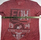 Fox Racing Motocross Shirt Red Slim Fit y2k Logo Double Sided Graphic Tee XL Small signs of wear, shown in photos--final photo is a close up: ***right sleeve graphic is faded and slight fading to the back graphic *** Please refer to photos for the most accurate measurements, description, and estimation of the item's condition. We’re happy to answer any questions or provide additional photos before purchase if requested! All items are sold as is and we try our very best to note any issues with condition in both our description and close up photos. Please remember that colors can look different across different devices and monitors. Condition: Please see photos for measurements. Any further measurements needed? Just ask! Small signs of wear, shown in photos--final photo is a close up: ***right sleeve graphic is faded and slight fading to the back graphic *** Otherwise EUC Pre-Owned: shows minimal to no signs of wear, as expected with typical well cared for use such as slight fading of colors with age. Please make sure to double check measurements for the best representation of fit, as brands can vary in sizing. Comes without sales tags, dust bag, or brand box. Will it Fit Check? Please reference the listed measurements (in photos and/or text) before purchasing. Fit check tip: Grab your favorite similar style item at home, lay the garment on a flat surface, and measure shoulder to shoulder, the width (armpit to armpit), and length (top to bottom). Then compare your measurements to those in our listing! If you need any further measurements not noted in the listing, please feel free to request, we will get back to you asap. FAST SHIPPING! Orders are usually shipped within 24 hours M-F Friday orders will ship Monday morning at the latest, unless there is a postal holiday. Feel free to send us a message before purchase if you?d like a certain delivery service or combined shipping offers. Still got Questions? Send us a message! We do our best to accurately and thoroughly represent each item in images and condition description, but, if there's any further information you?d like before purchasing or have a shipping request, please don't hesitate to ask and we'll get back to you asap. RETURN POLICY: Please reach out prior to purchase with any questions or shipping requests. Returns are accepted within 30 days, buyer pays return shipping. Refund issued upon receipt of item in original condition. Full refund (minus original shipping) will be issued once we receive the item assuming it is in the exact same condition as it was shipped.(Clean, unaltered, tags still attached if item was new with tags, etc.) We request that you select "Item does not fit" when returning an item that does not fit. Thank you for shopping small and supporting our lil' Rodeo!