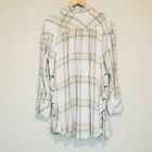 Free People Pastel Plaid Nordic Day Button Front Tunic Top Not your average plaid button-down, this one is styled with a high/low hem and trendy lace-up sides that add fun detail without losing the laid-back feel. Front button closure Point collar Long sleeves with button cuffs Back yoke Lined 51% viscose, 49% cotton Machine wash, line dry Size S Small Approximate Measurements: pit to pit - 22" across length - 31" Excellent pre-owned condition, no rips, tears or stains. Smoke free, dog friendly home. casual everyday comfort plaid flowy soft girl aesthetic pastels fall autumn spring transitional