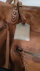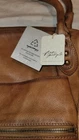 This beautiful Free People We The Free Emerson Tote Saddle is perfect for any fashion-forward woman. The bag is made of high-quality leather in a rich brown color, with a gunmetal hardware accent. It features a zip closure and a detachable strap for versatile carrying options. The interior is lined with soft cotton and features a spacious main compartment with a width of 16.5", a height of 12", and a depth of 7". The bag also comes with a matching brown leather handle/strap, adding a touch of elegance to the overall design. This tote is part of the Free People product line and is perfect for any occasion. The tote has a comfortable, slouchy, and supple leather feel. It has a worn leather fabrication. Which makes it pretty and unique. Exterior zipper compartments, exterior and interior pockets, buckle details, two top handles, detachable and adjustable shoulder strap, zipper closure, and branded tag.