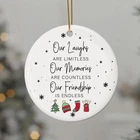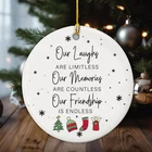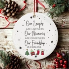 Celebrate the friends who feel like family with this Friendship Christmas Ornament 2025. Printed on a glossy ceramic ornament, the heartfelt message—“Our Laughs are limitless, Our Memories are countless, Our Friendship is endless”—turns a simple decoration into a keepsake they will cherish. Its clean white finish, playful icons, and snowflake details sparkle under holiday lights. Lightweight and easy to hang, it looks beautiful on Christmas trees, wreaths, garlands, or displayed year-round on a small stand. Whether you’re shopping for a best friend, BFF, roommate, sister, or coworker, this ornament makes a meaningful gift for Secret Santa, gift exchanges, stocking stuffers, birthdays, or Friendship Day. Every glance is a reminder of laughter shared and memories made. 【Friend Christmas Ornament – Double Sided Print】 Celebrate lasting friendship with this beautiful ceramic ornament printed on both sides with the touching message: "Our laughs are limitless, our memories are countless, our friendship is endless." 【Best Friend Ornament – Christmas Gift for Women】 Thoughtful Christmas gift for a close female friend, sister, or coworker. A lasting keepsake ornament that celebrates friendship. 【Premium Ceramic – Glossy and Durable】 Made from quality ceramic, 3 inches in diameter. Perfect as a friendship ornament for Christmas tree decoration. 【Easy to Hang – Christmas Tree Decoration】 Includes string for easy hanging on Christmas tree, wreath or wall. Add charm and warmth to your festive space. 【Friendship Christmas Gift – Heartfelt & Timeless】 Perfect for gift giving on Christmas, Secret Santa, or as a simple token of appreciation. A non-personalized ornament that’s meaningful for anyone.