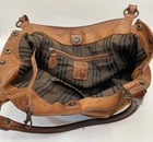 Pre-loved! Minor imperfections from normal wear/use. Beautiful soft distressed leather. See pictures as part of description. Striped lining,