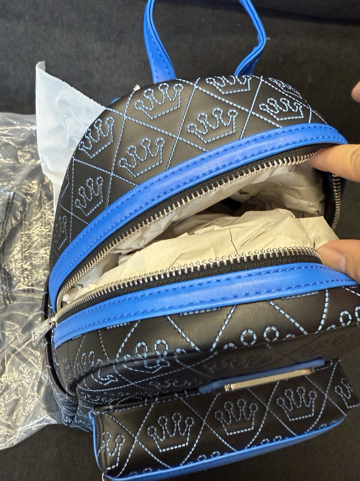 Exclusive! New with tags. MSRP $80 Backpack dimensions: 9”W x 10.5”H x 4.5”D (Please note: width is measured across the bottom of the backpack.)
