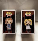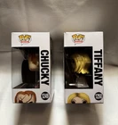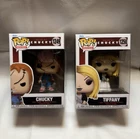 The Funko Pop! Bride of Chucky bundle includes two vinyl figures: Chucky (#1249) and Tiffany (#1250) from the horror movie "Bride of Chucky." These figures are part of the Horror Series 9 collection released in 2022, featuring the iconic characters in their classic designs. The set is unopened in its original packaging and is a common rarity item. This bundle appeals to fans of horror movies and collectors of Funko Pop! figures, offering a unique addition to their collection. • • • •Feel free to shoot me a message for “Combined Shipping” if your interested in multiple Funkos !! • • •I post tons daily so keep your eyes peeled for anything that catches you eye!! • • •Please check all the photos in the listing for condition, I do my best to point out any major flaws in the boxes!!