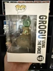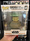 This Funko Pop! Deluxe figure features Grogu from the Star Wars: The Mandalorian Series 7. Grogu is showcased using the Force in this vinyl figure from the Star Wars collection. The box is damaged, but the figure is intact. This collectible item is part of the Pop! Deluxe product line by Funko, perfect for fans of the Star Wars franchise and sci-fi television.