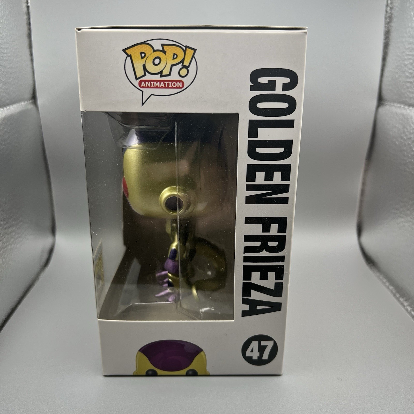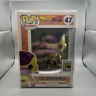 The Funko Pop Golden Frieza SDCC 2015 Red Eyes Figure 47 is a highly sought-after collectible item for fans of the Dragon Ball Z franchise. This exclusive figure features the character Frieza with red eyes, a color variant, and is part of the Pop! product line by Funko. The figure comes in its original packaging from the 2015 San Diego Comic Con event, adding to its rarity and value. With its unique design and limited availability, this Golden Frieza figure is a must-have for any serious collector. This is autographed by Christopher Sabat, the voice actor for Goku and several other characters in the DBZ universe.